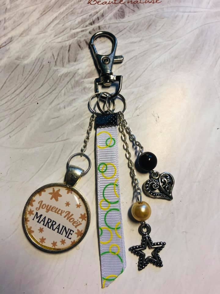 Porte clé ou bijou de sac pour Noel pour une marraine.
