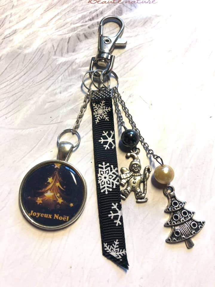 Porte clé Joyeux Noel noir et or sapin étoilé