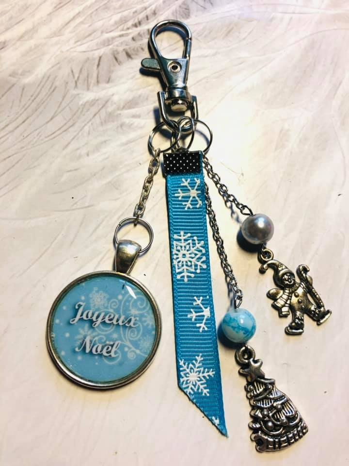 Porte clé Joyeux Noel turquoise bleu