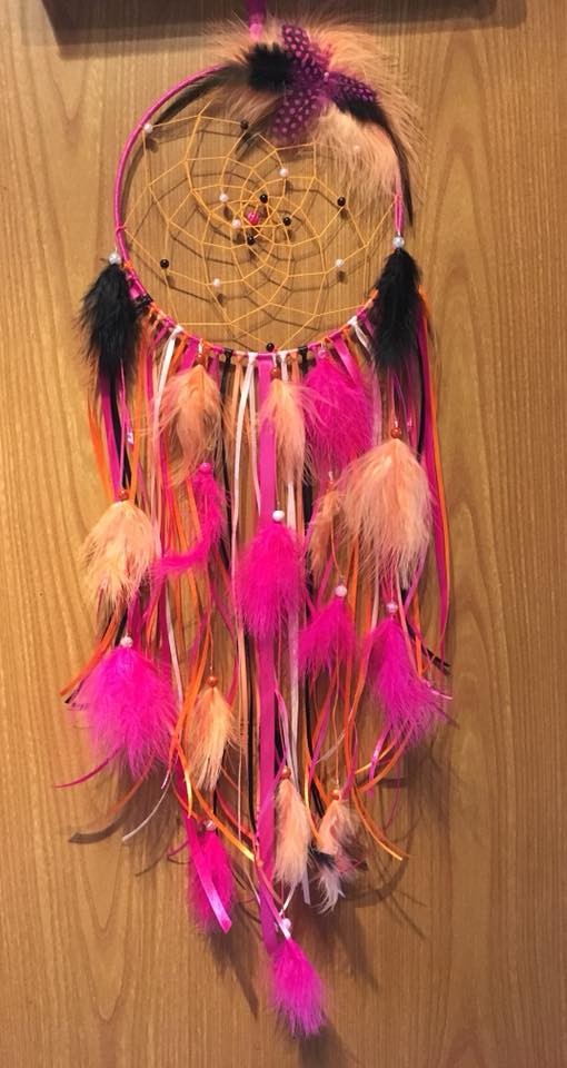 Attrape rêve dans les tons de rose, fuschia et une touche noir. Ensemble de rubans, perles et plumes volupté issues d'un élevage français.