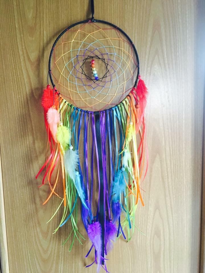 Joli attrape rêve aux couleurs de l'arc en ciel.
