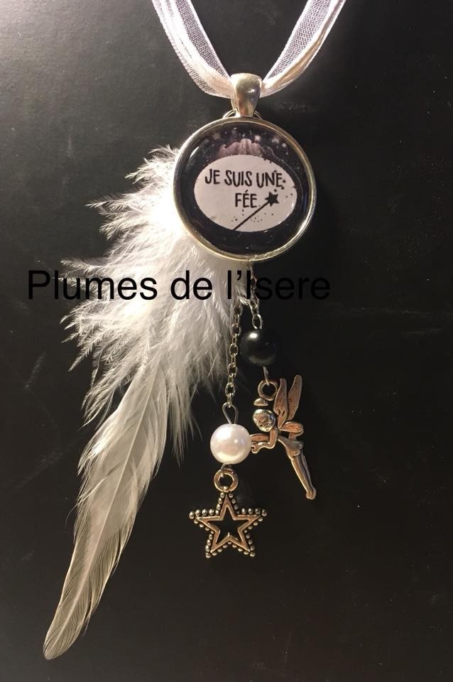 La plumee est une plume de coq blanc avec ses perles et ses breloques assorties.
