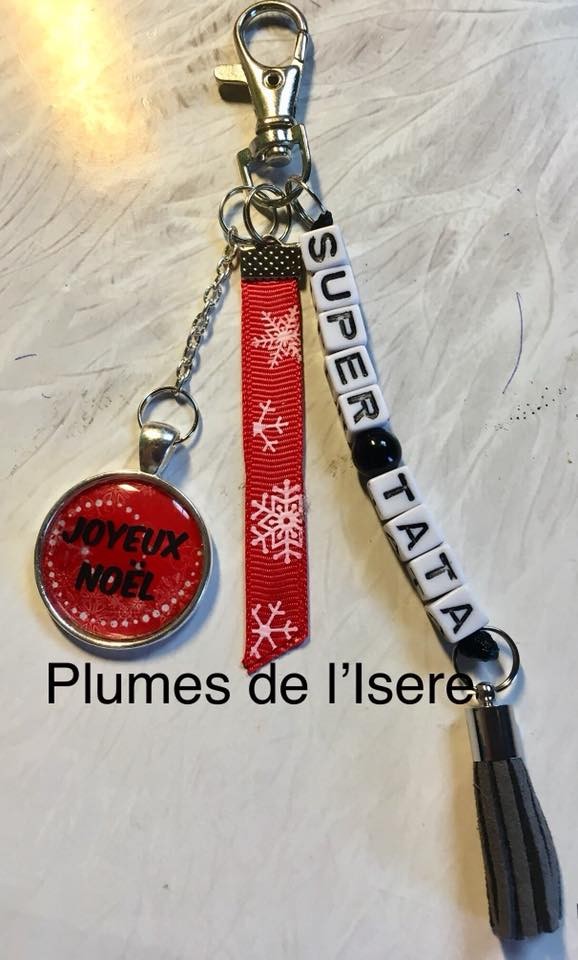 Porte clé ou bijoux de sac à offrir à sa tata pour les fetes de fin d'année. Couleur noir et rouge.