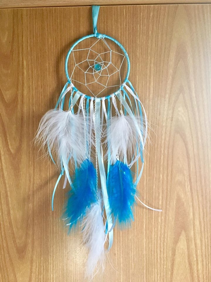 Petit attrape reve dans les tons de bleu et blanc.