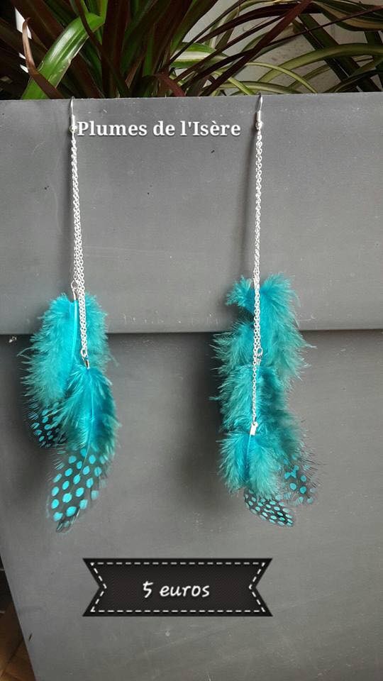 Finition par deux petites plumes teintées de pintade. Couleur vert bleu.