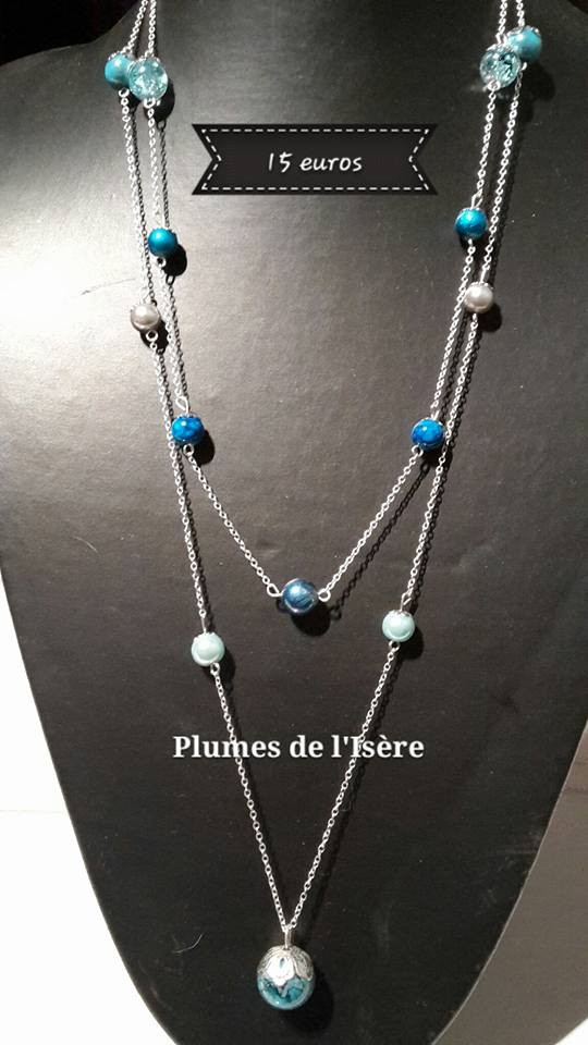 Collier sautoir bleu 2 rangs