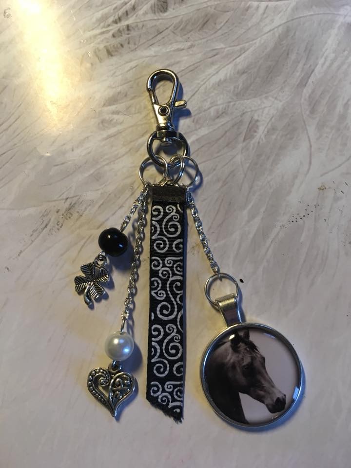 Porte clé ou bijou de sac cheval noir et blanc