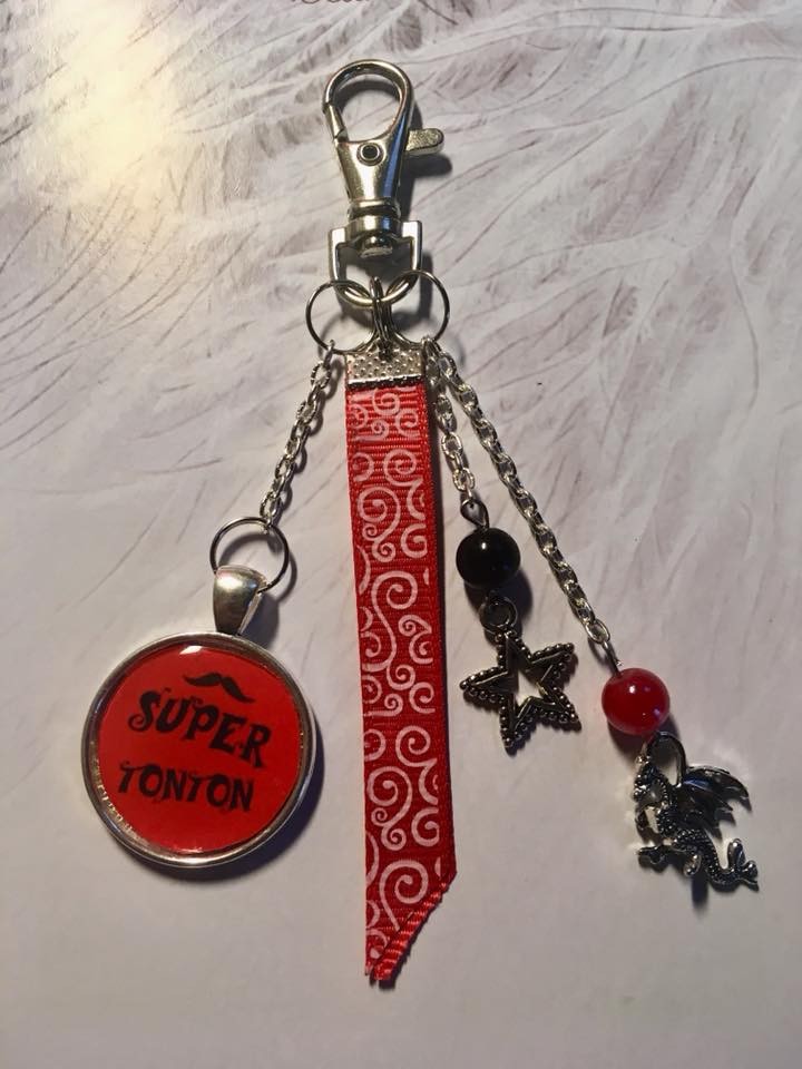 Cabochon avec inscription "Super tonton" petit motif de moustache au dessus de la phrase.