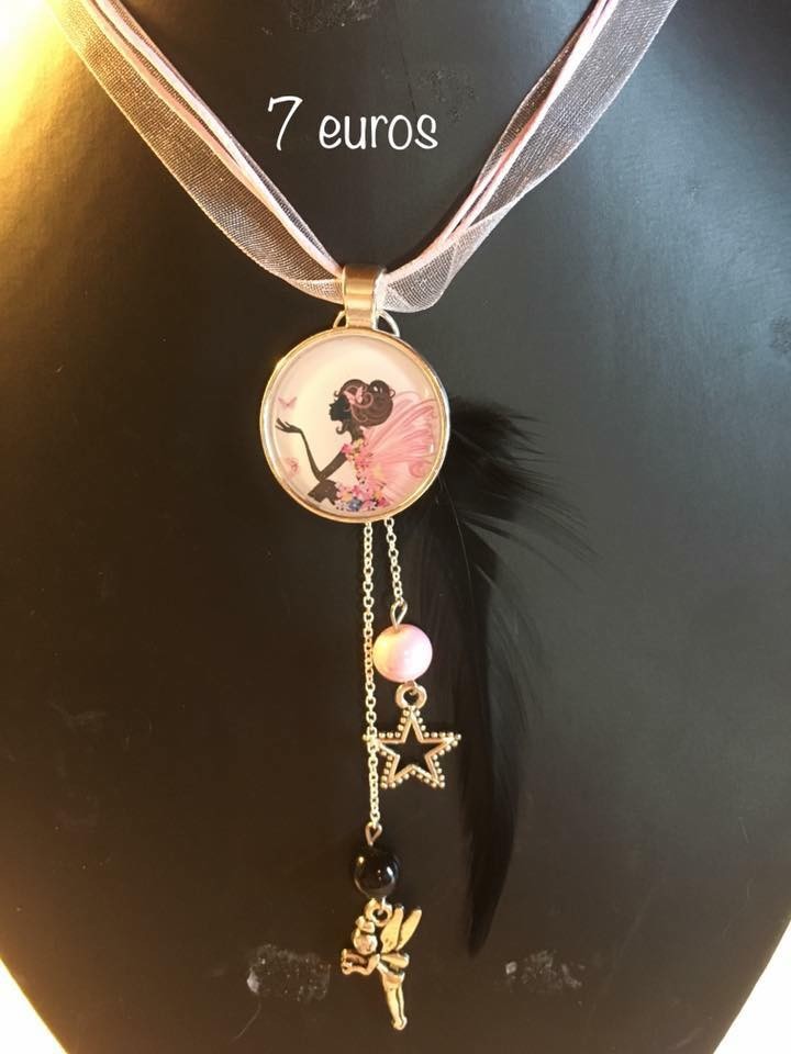 Cabochon avec dessin d'un fée en rose et noir avec des papillons