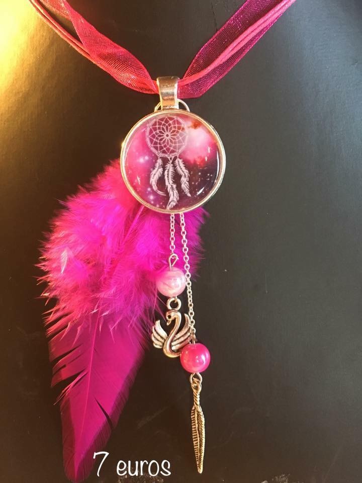Collier rose fuschia attrape reve
