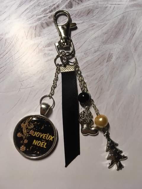 Bijoux de sac ou porte clé pour offrir à Noel couleur noir et doré.