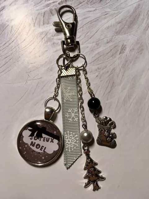 porte clé ou bijoux de sac noel gris et noir