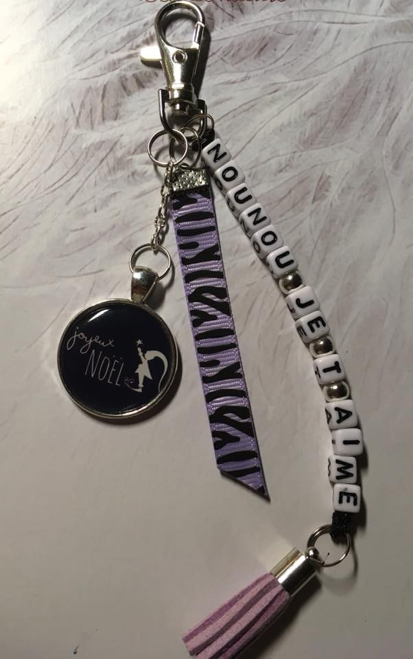 Porte clé ou bijou de sac pour offrir à la nounou pour Noel. Couleur violet noir.