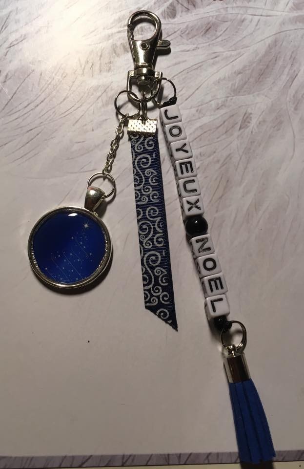 Porte clé ou bijou de sac pour offrir pour Noel. Couleur bleu et noir.