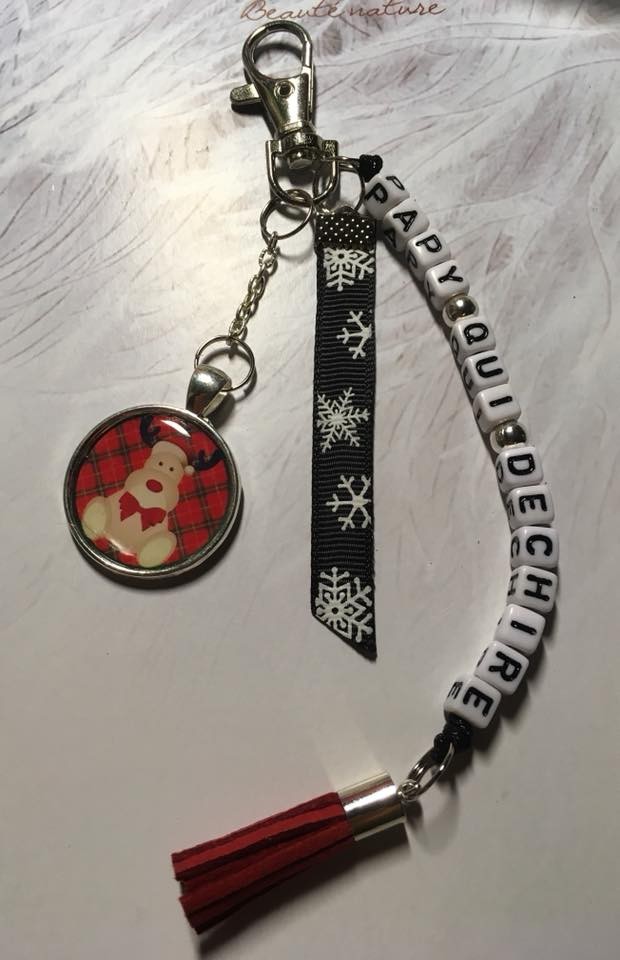 Porte clé ou bijou de sac pour offrir à un papy pour Noel. Couleur rouge et noir.