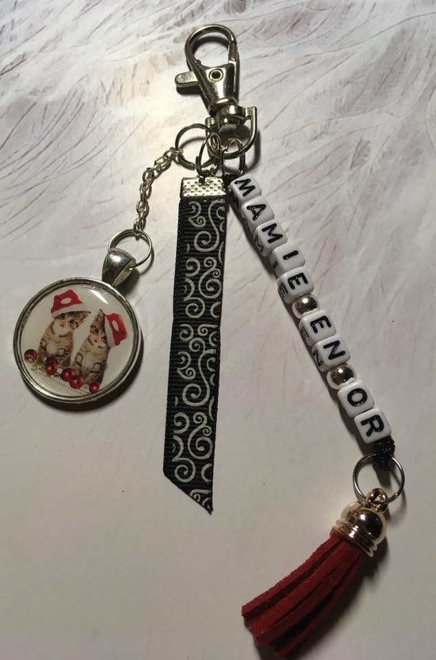 Porte clé ou bijou de sac pour offrir à une mamie pour Noel. Couleur rouge et noir.