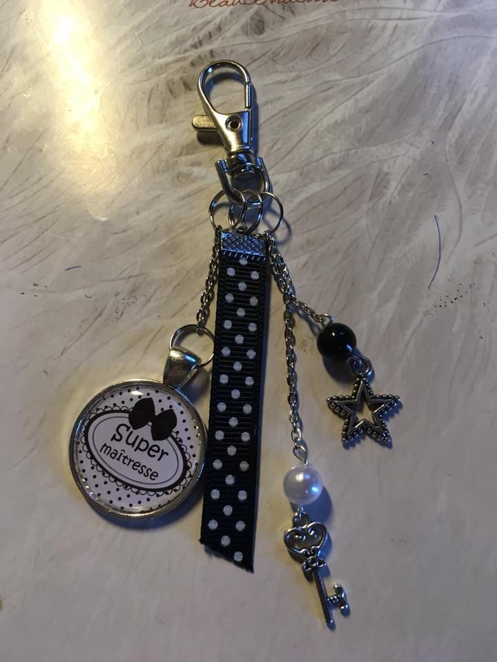 Cabochon avec l'inscription: " Super Maitresse" noir et blanc avec noeud noir