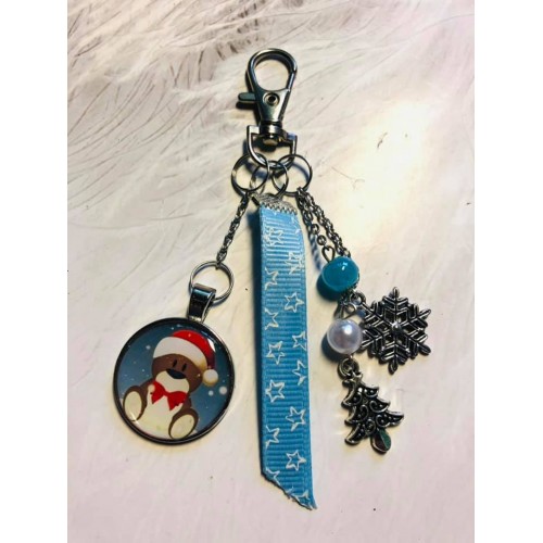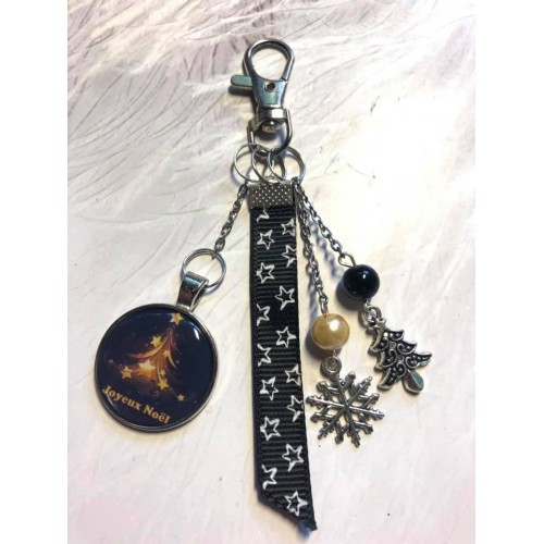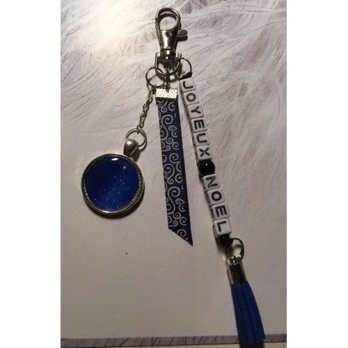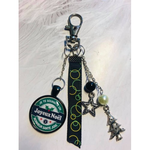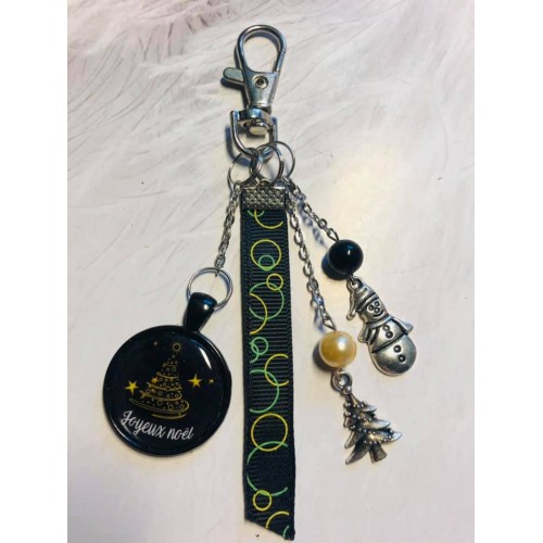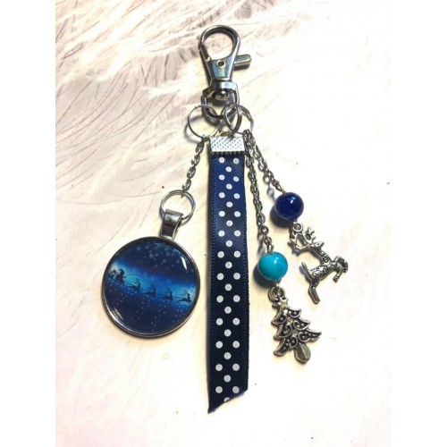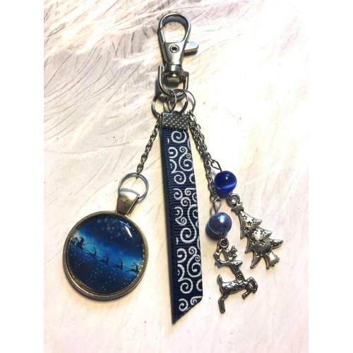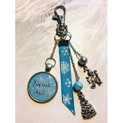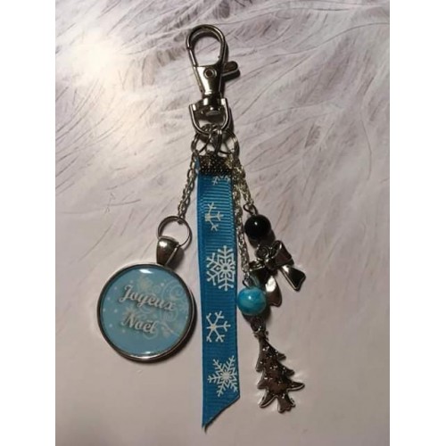 Porte clé ou bijoux de sac joyeux noel noir et bleu