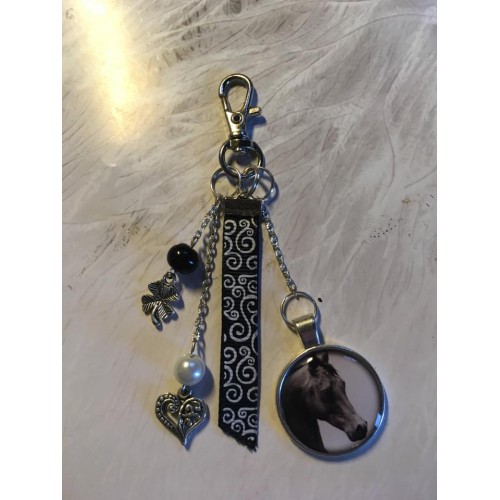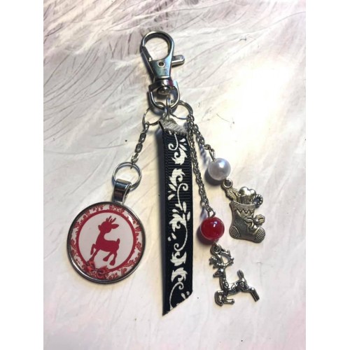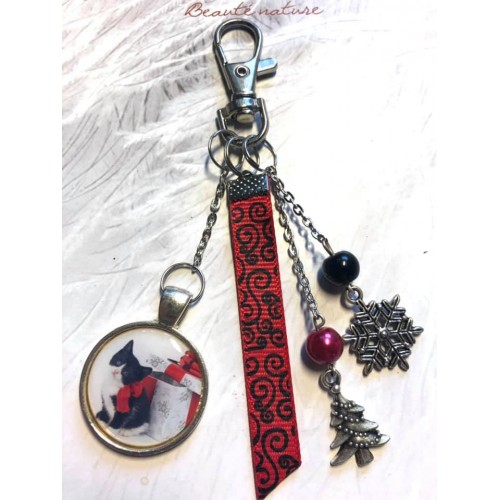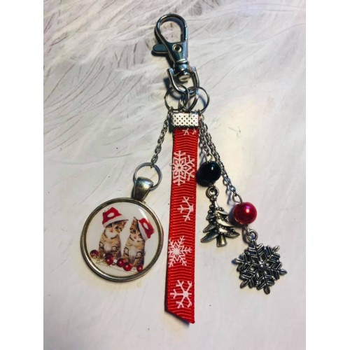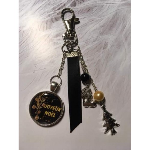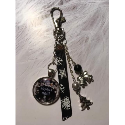 Porte clé ou bijou de sac noel noir et blanc parrain