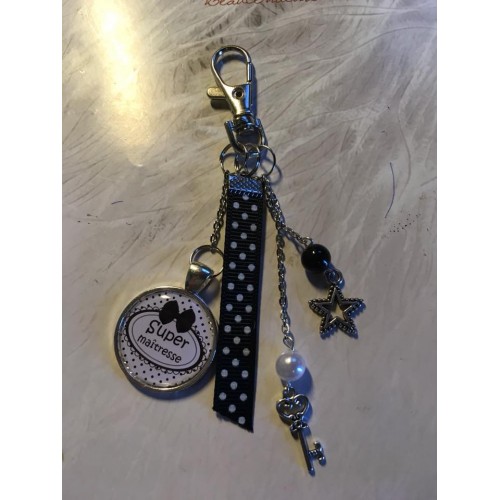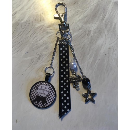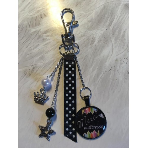 porte clé ou bijou de sac Merci Maitresse noir et blanc