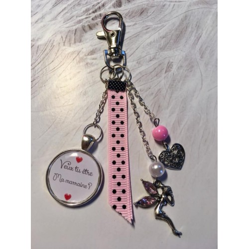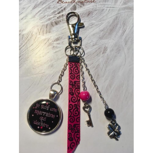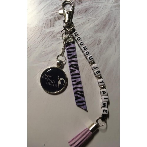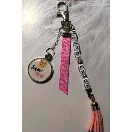 Porte clé ou bijoux de sac Joyeux Noel fuschia noir Marraine