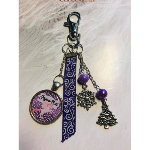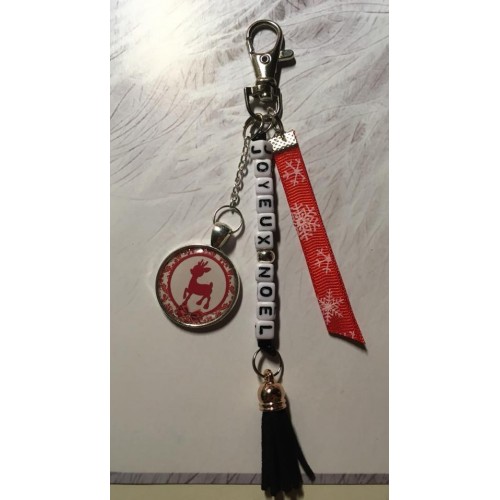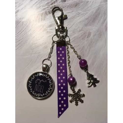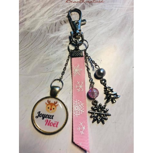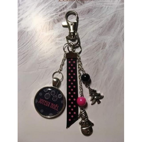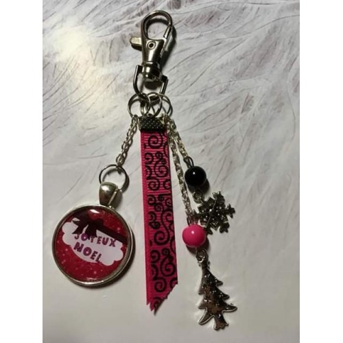 Porte clé ou bijoux de sac Joyeux noel noir fuschia