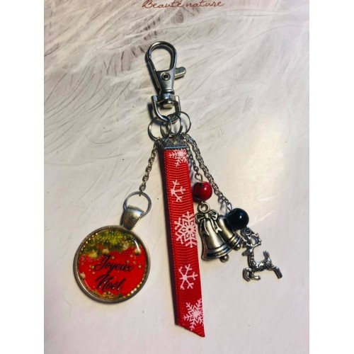 Porte clé Joyeux Noel rouge et vert traditionnel