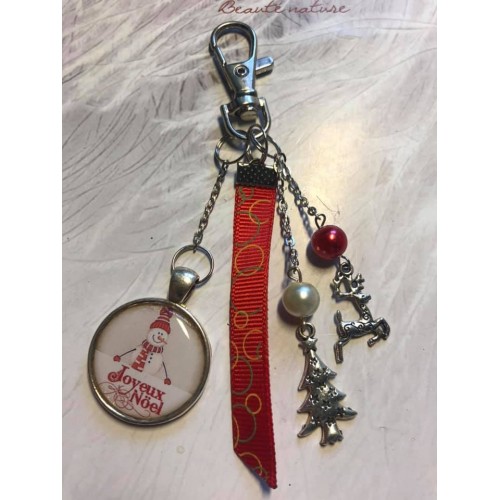 Porte clé Joyeux Noel bonhomme de neige rouge