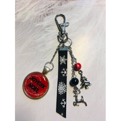 Porte clé Joyeux Noel rouge et noir diamant 2