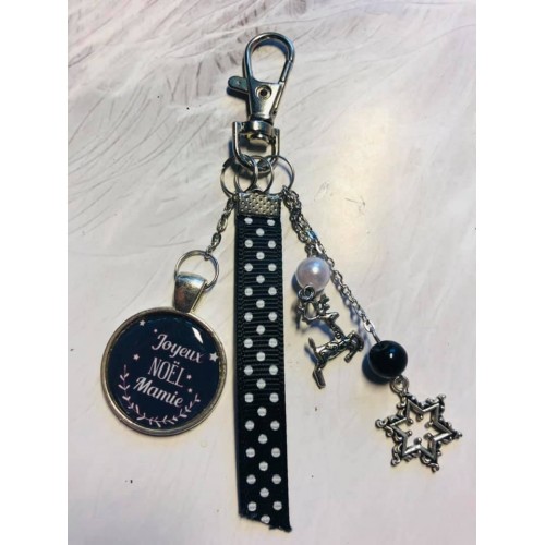 Porte clé ou bijou de sac Noel Mamie noir et blanc