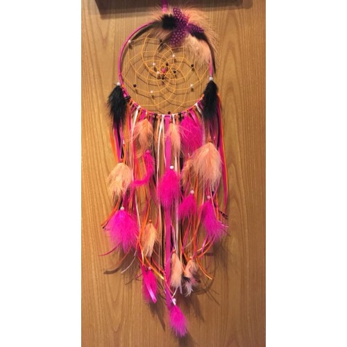 Attrape rêve orange, rose et touche de noir 20cm diamètre