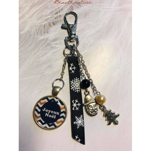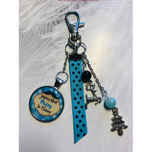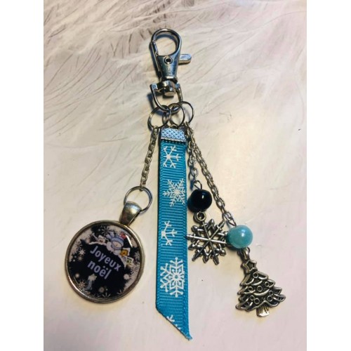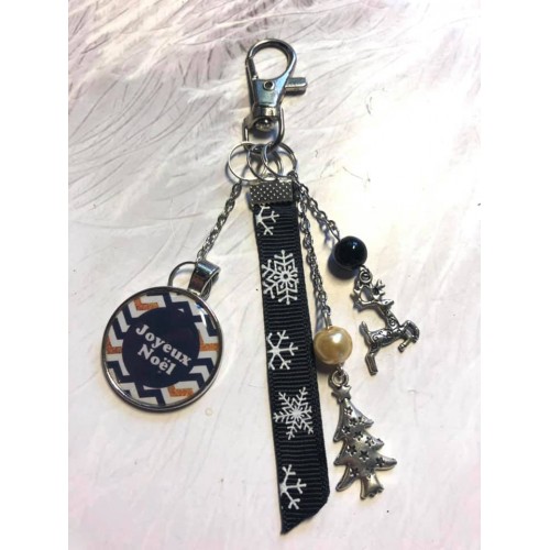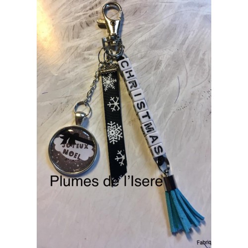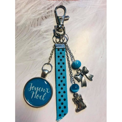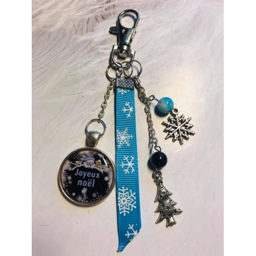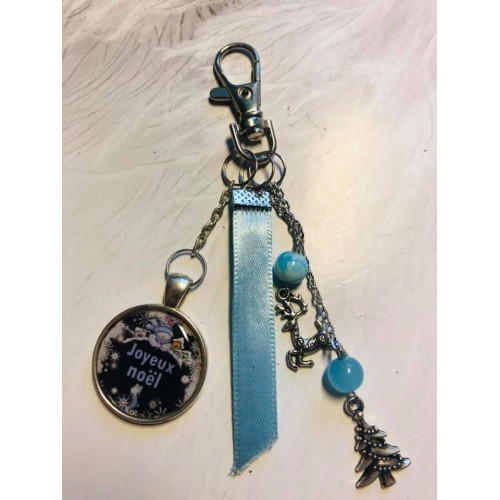 Porte clé ou bijoux de sac Noel noir et bleu
