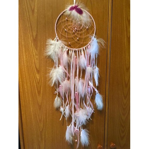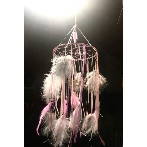 Attrape reve rose clair et blanc 20cm diamètre