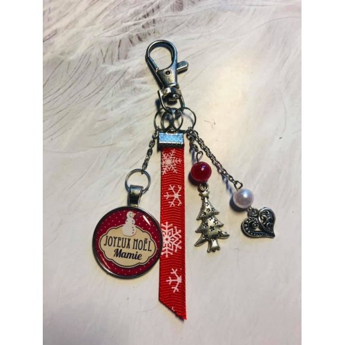 Porte clé ou bijou de sac Noel Mamie rouge