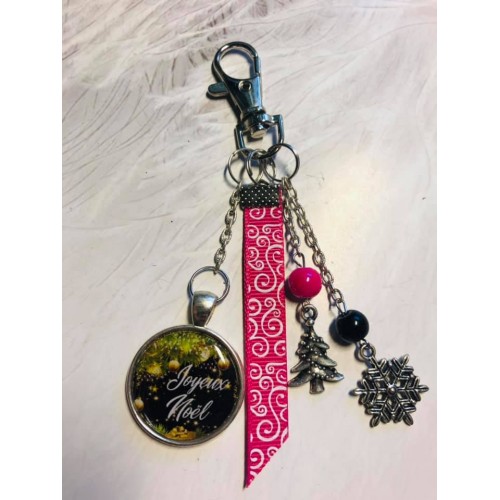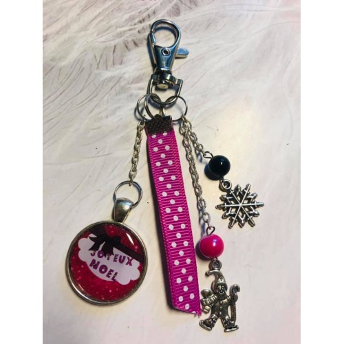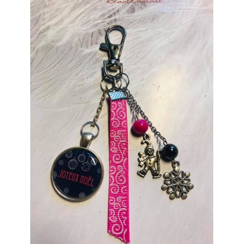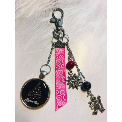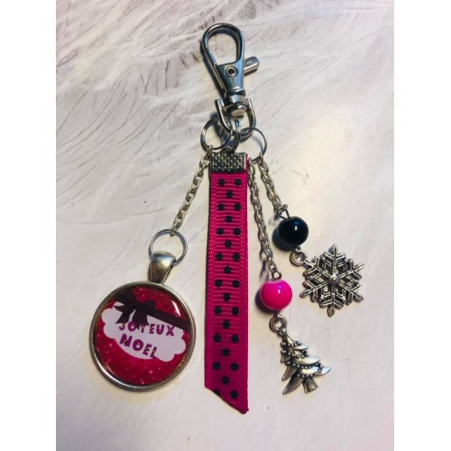 Porte clé Joyeux Noel noir et fuschia