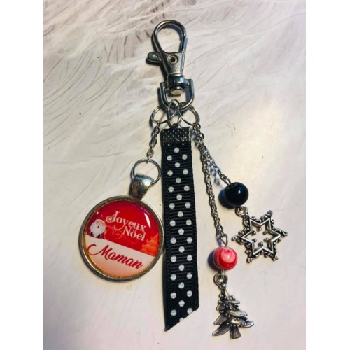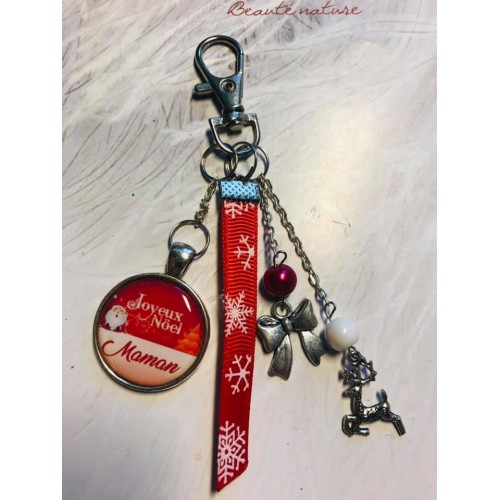 porte clé ou bijoux de sac Noel Maman rouge