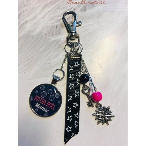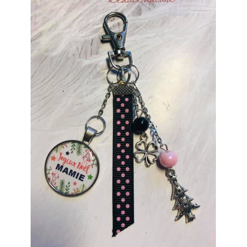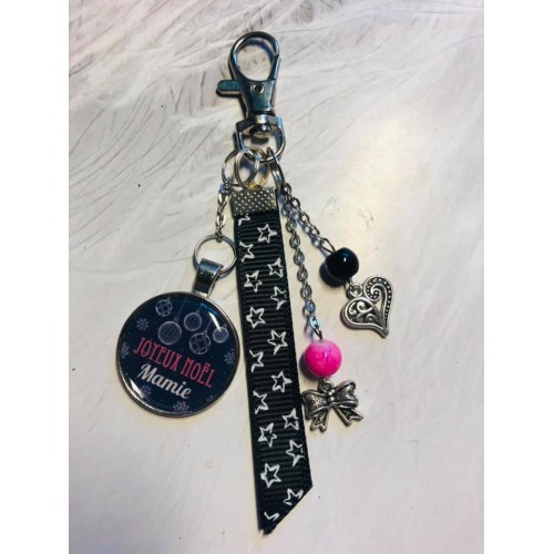 porte clé ou bijoux de sac Noel Mamie noir fuschia