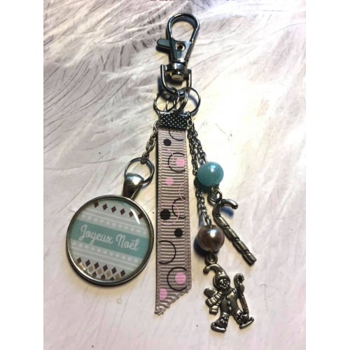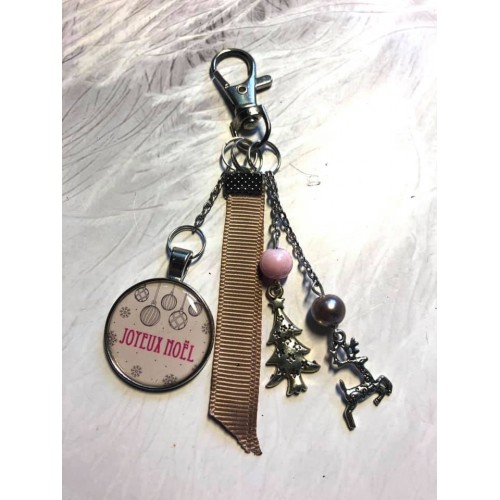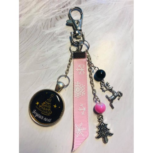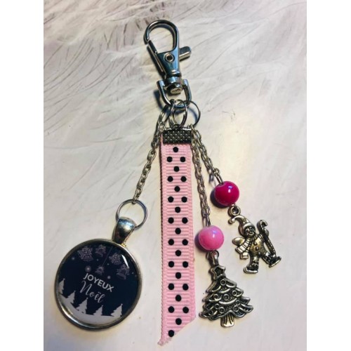 Porte clé Joyeux Noel rose et noir