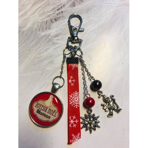 porte clé ou bijoux de sac Noel Maman rouge bonhomme de neige