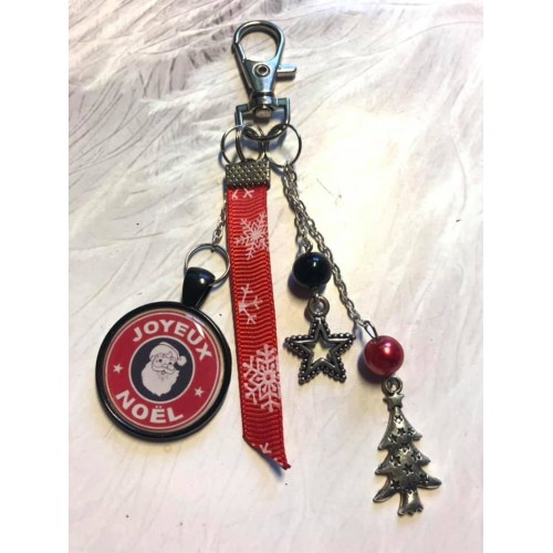 Porte clé Joyeux Noel rouge noir père noel