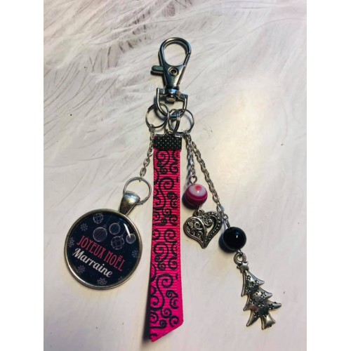 porte clé ou bijou de sac Noel Marraine noir fuschia