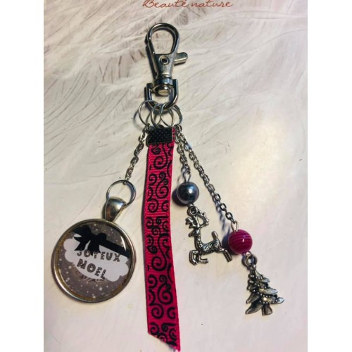 Porte clé Joyeux Noel noir et fuschia 2