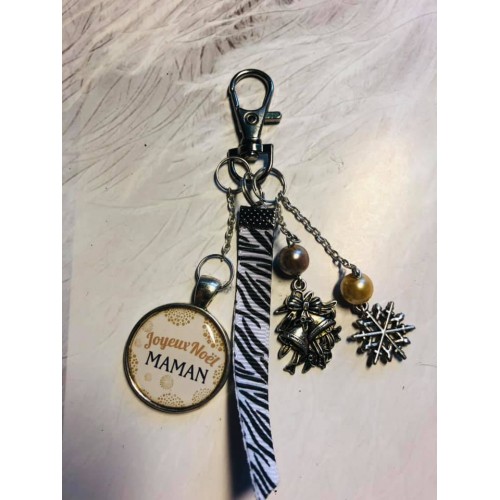 porte clé ou bijou de sac Noel Maman blanc or