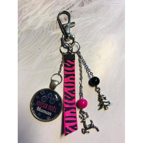 porte clé ou bijou de sac Noel Maman fuschia et noir